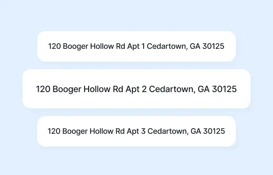 | Uses multiple databasesCheck addresses against the USPS and other authoritative sources | |||||