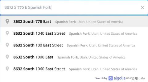 - With each entered keystroke, the US Autocomplete API returns address suggestions (taken from an index of house number, street, city, and state combinations) and populates a dropdown of relevant local addresses.