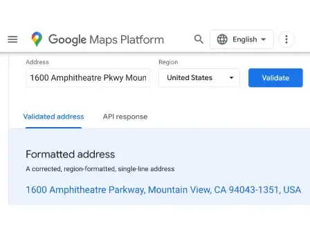 The search giant's solution is to use Google's Address Autocomplete API followed by Google’s Address Validation API in two separate processes. One process for address suggestions and the other at a later stage to get the valid address. Here's what Google's address verification product page says on the subject: