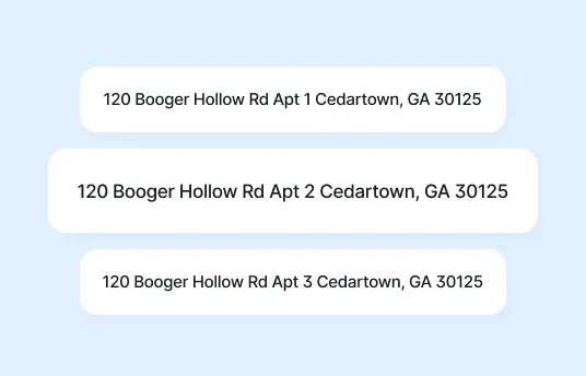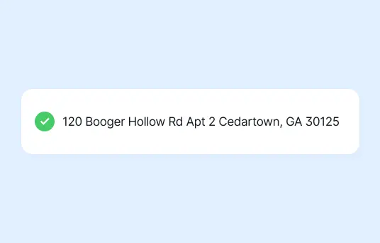 Address autocomplete delivers accurate address suggestions in real-time, so you capture clean, structured data without slowing anyone down.